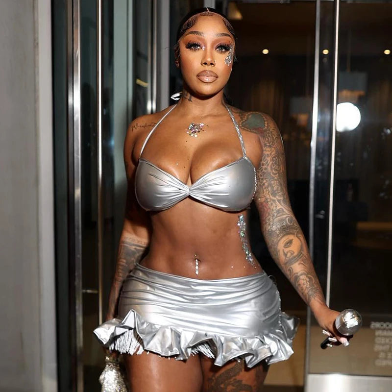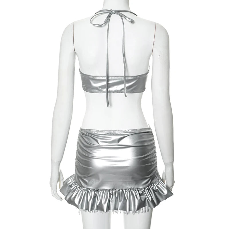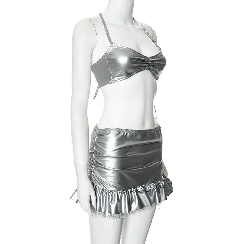 Elevate your style with the Fire Between Us Skirt Set! This sexy and club-ready ensemble is made from high-quality polyester, ensuring both comfort and durability. The lace closure adds a touch of elegance, while the solid pattern and sheath silhouette slim and flatter your figure. Be bold and confident with this mini skirt and super-short top!