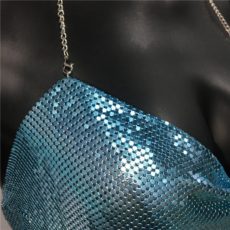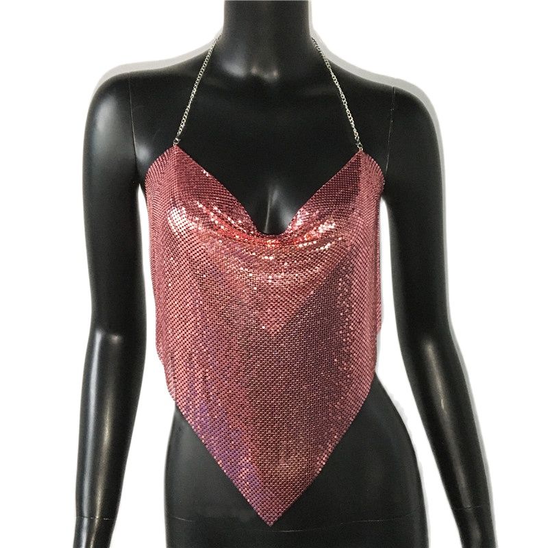 This women's camisole top is a must-have for the holidays. The sequins sparkle brilliantly, and the spaghetti straps provide an elegant look. The halter neckline is perfect for showing off your chest, and the back is open for your skin to breathe. Pair this top with a black skirt or shorts for a classic, yet sexy look.
