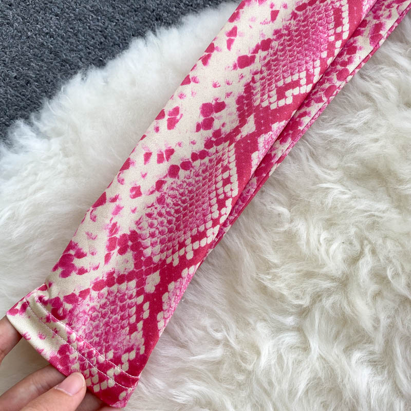 A bodysuit is the perfect layering piece for your wardrobe! This pink snakeskin print bodysuit has long sleeves and has a cheeky fit. You'll feel confident and sexy in this one!