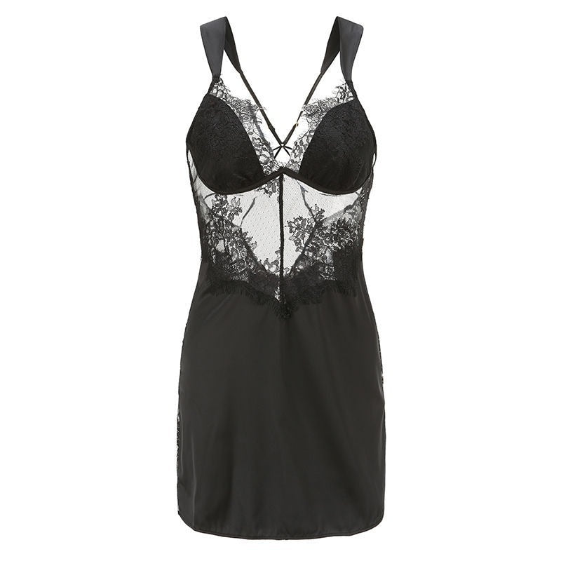 The perfect piece for a romantic evening, this nightie is luxurious and stylish. . The soft and feminine nightwear is made from soft and sensual silk and is sure to make you feel like a queen. You will look and feel elegant all night long. A charming floral lace design and a pretty soft color make it an excellent choice for the upcoming spring.