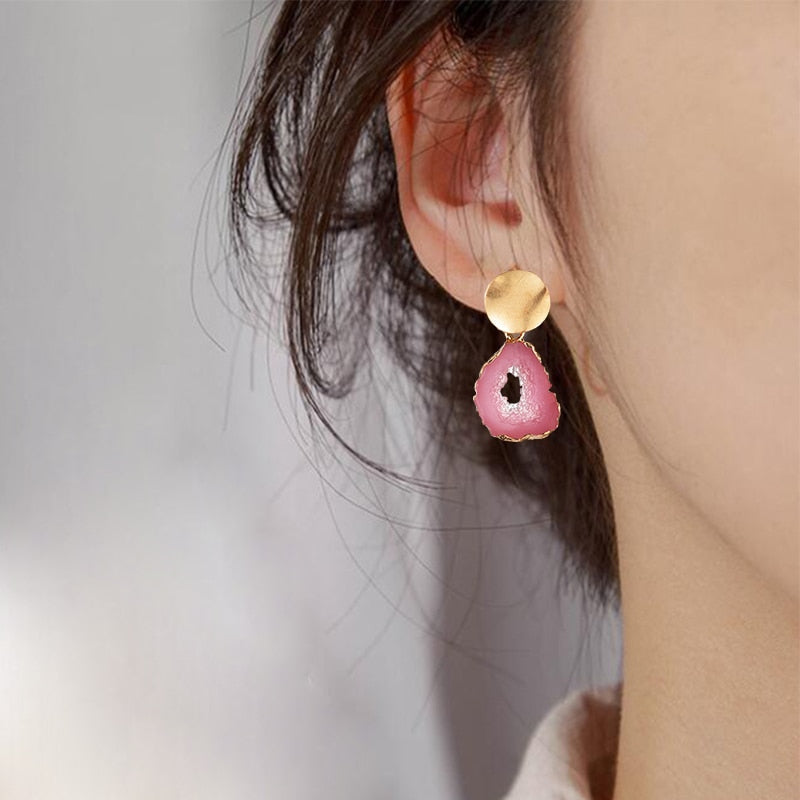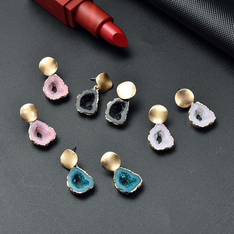 Zinc Alloy Drop Dangle Earrings with Resin Stone