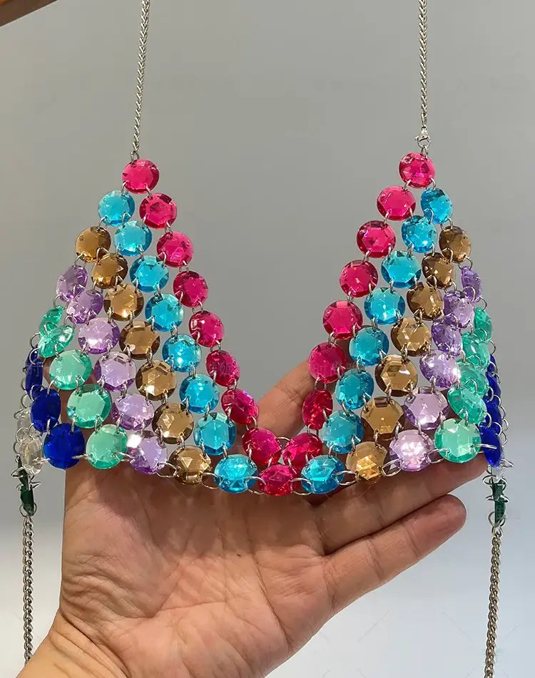 Make a statement with our Got Me Screaming Body Jewelry! Made with high-quality zinc alloy and adorned with sparkling crystals for an eye-catching touch. The unique geometric design will add a bold and stylish element to any outfit. Perfect for adding some flair to your top bra collection!