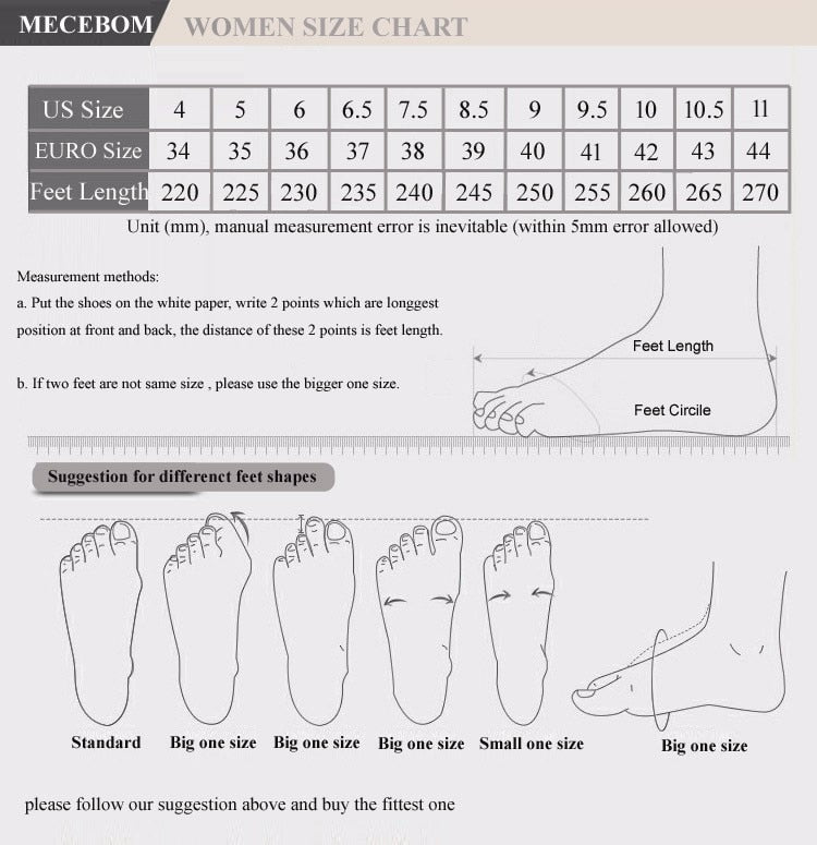 Attention: Please Measure Carefully Your Feet Length From Heel to Toe and Compare with Our Size Guide So You Choose the Correct Size.