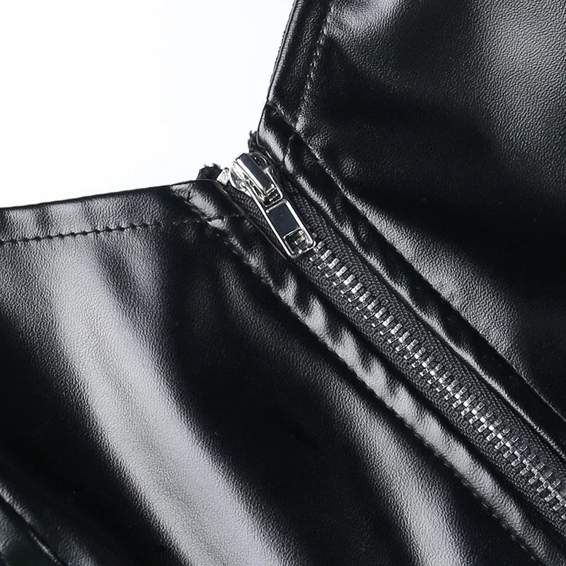 This gothic-style crop top is made of soft and durable PU material, perfect for any dark and edgy look. The solid pattern adds a touch of mystery, making you stand out in any crowd. Embrace your inner darkness with the Haunt Me Softly Crop Top.