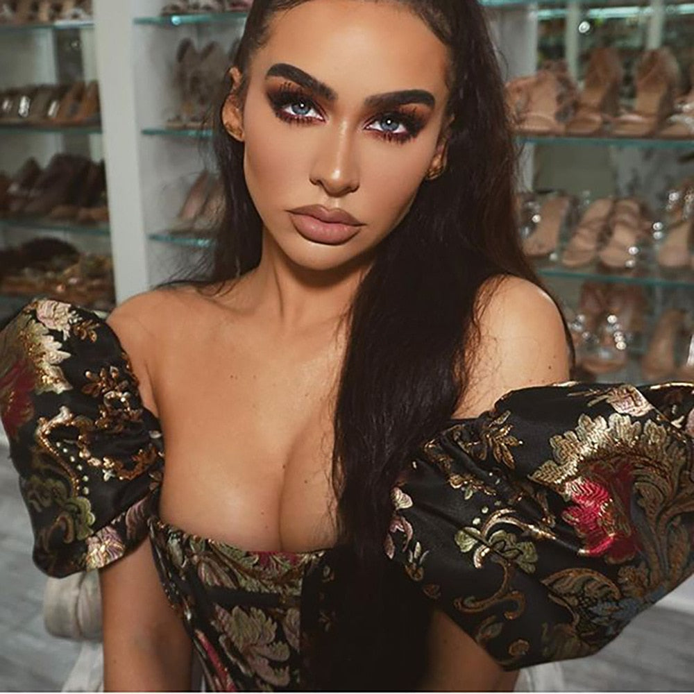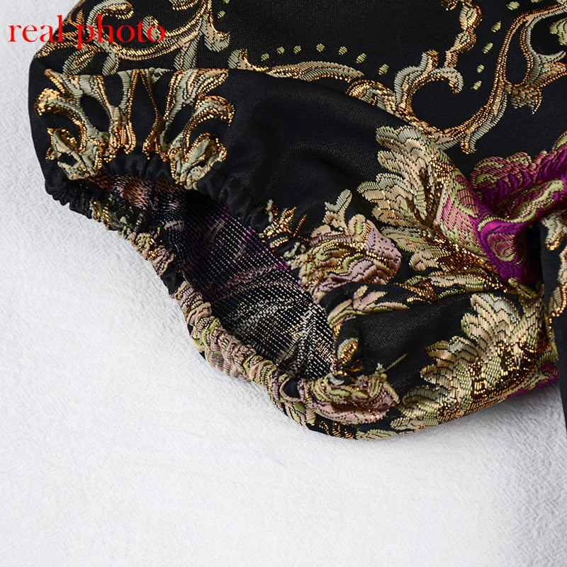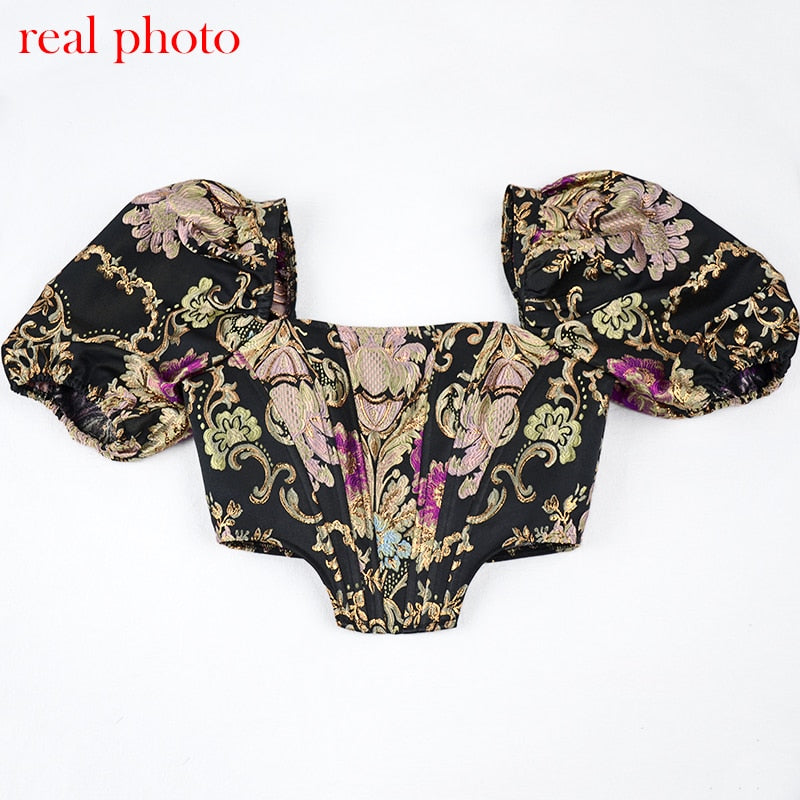 Highstreet Square Collar Jacquard Boned Puff Sleve Women Crop Top