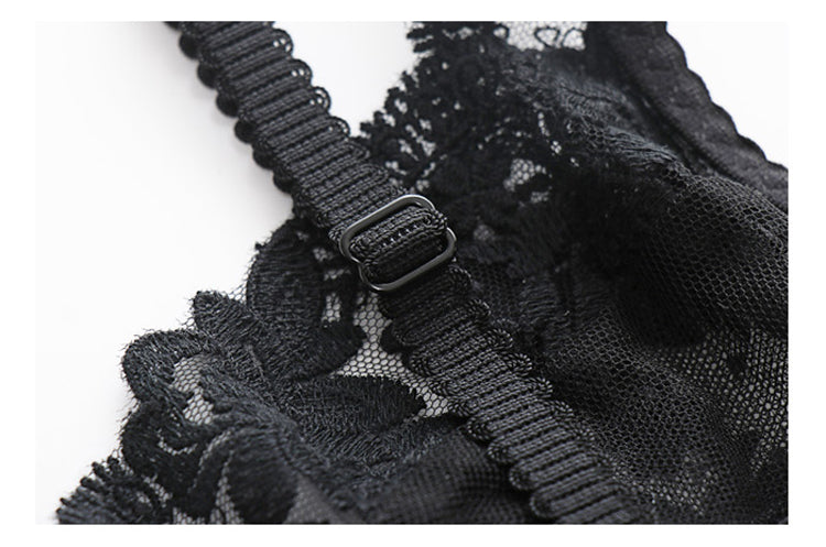 This sheer lace lingerie is a hot fashion trend that is sure to be a hit with any woman. The delicate lace material feels wonderful against your skin. These sexy bralettes and panties are designed to accentuate a woman's curves to create a stunning look. Add a pair of thigh-high stockings for a seductive and stylish look.