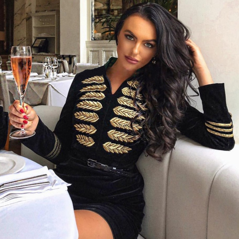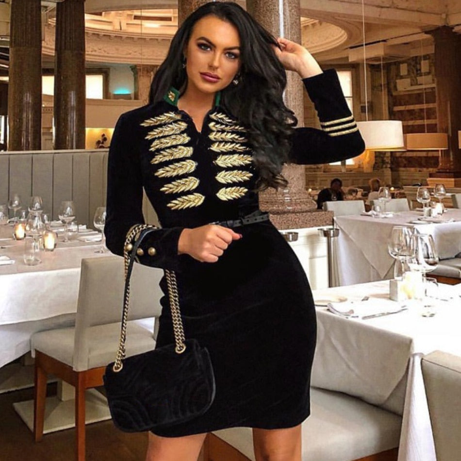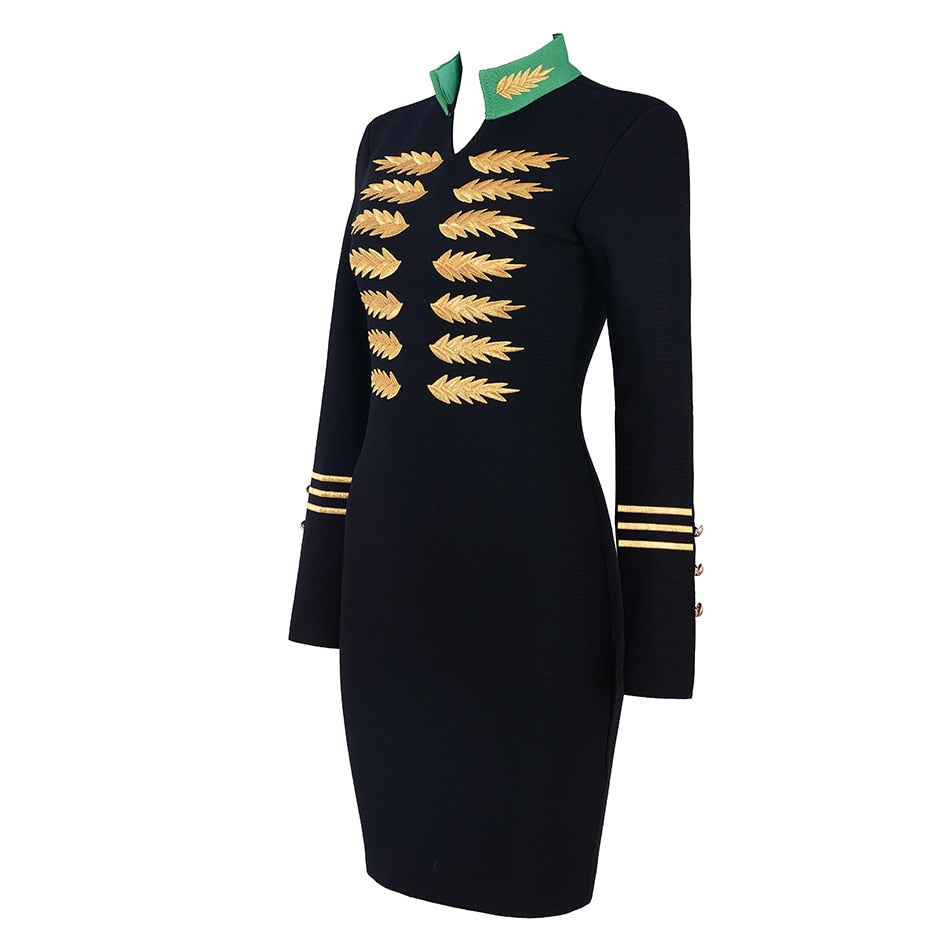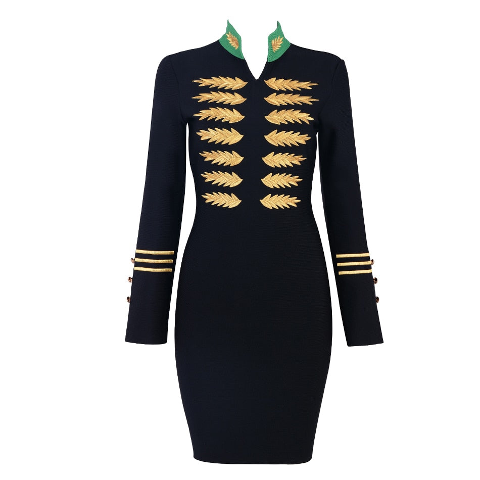 Golden Embroidery Bandage Dress with Polyester Spandex