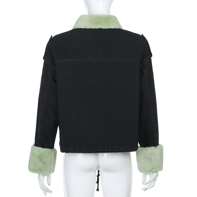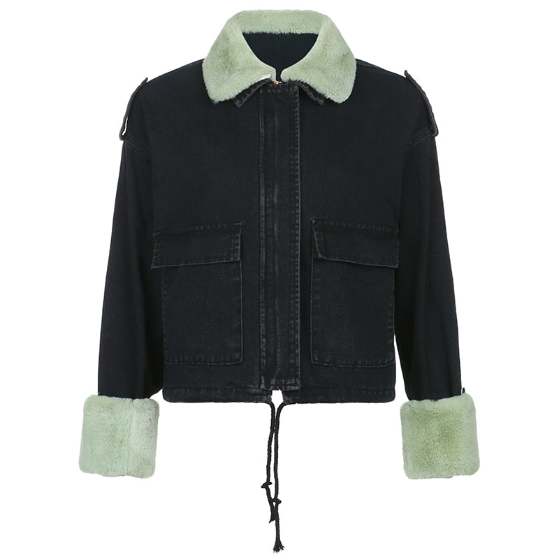 Turn-Down Collared Solid Polyester Jacket with Drawstring Decoration and Zipper Fly Closure