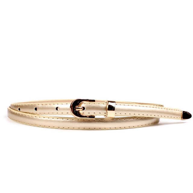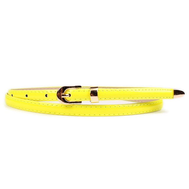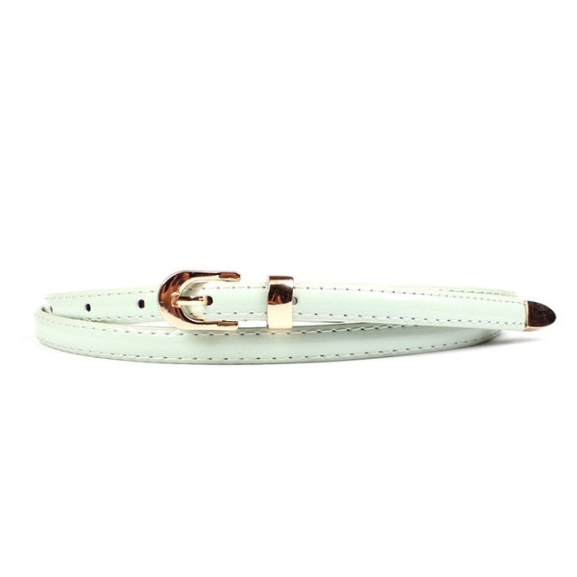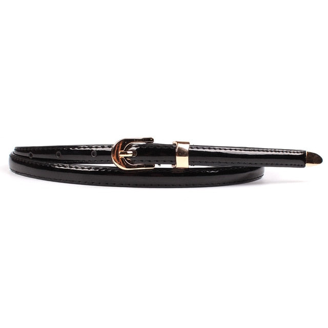 Solid PU Leather Skinny Belt with Alloy Buckle