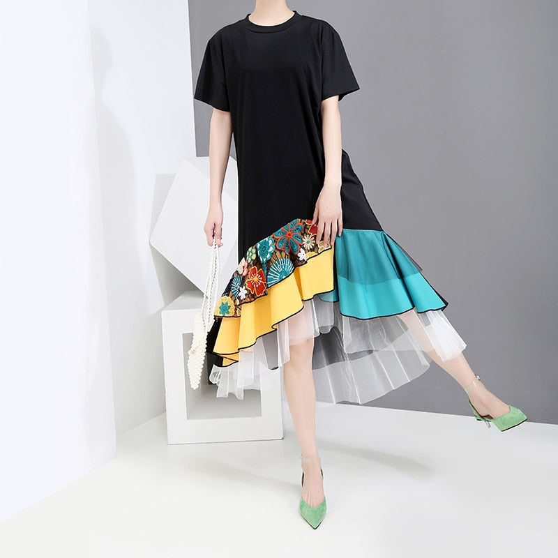 Cotton Rayon T-Shirt-Dress Style with Short Sleeve and O-Neck Collar
