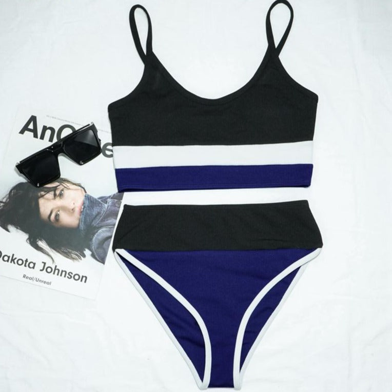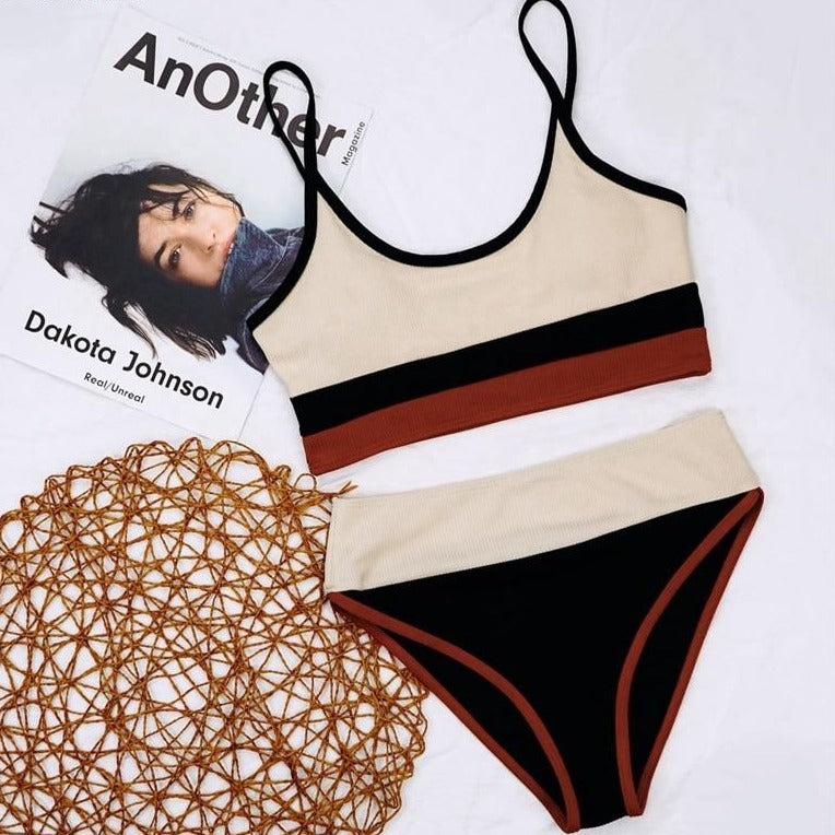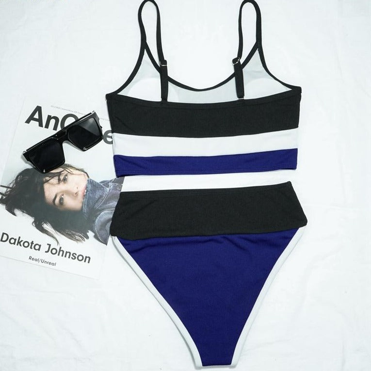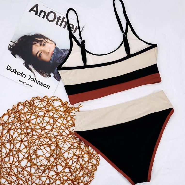 Stripe Three-Toned Style Retro Bikini with Polyester Material