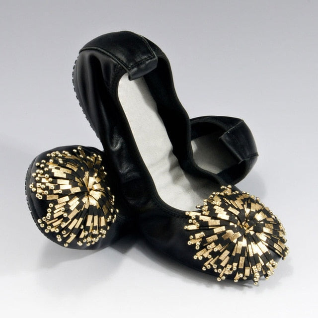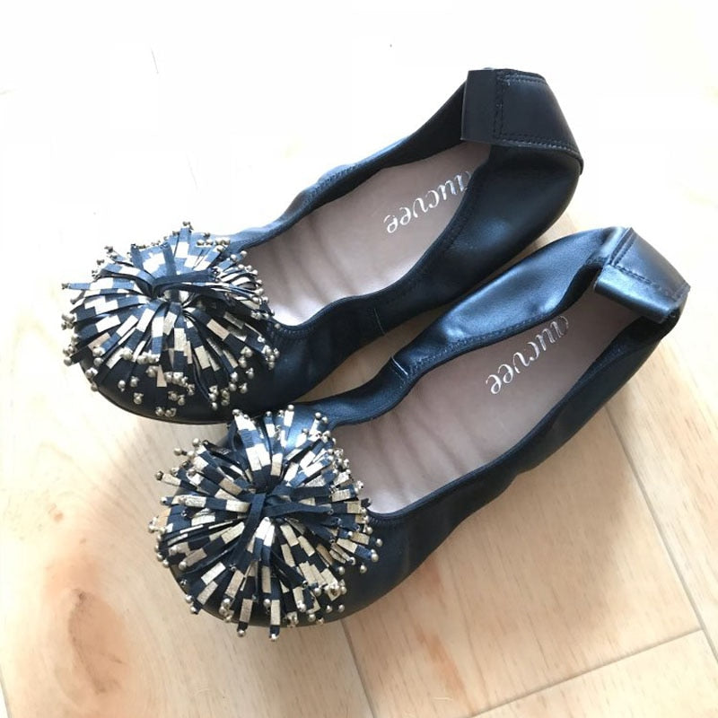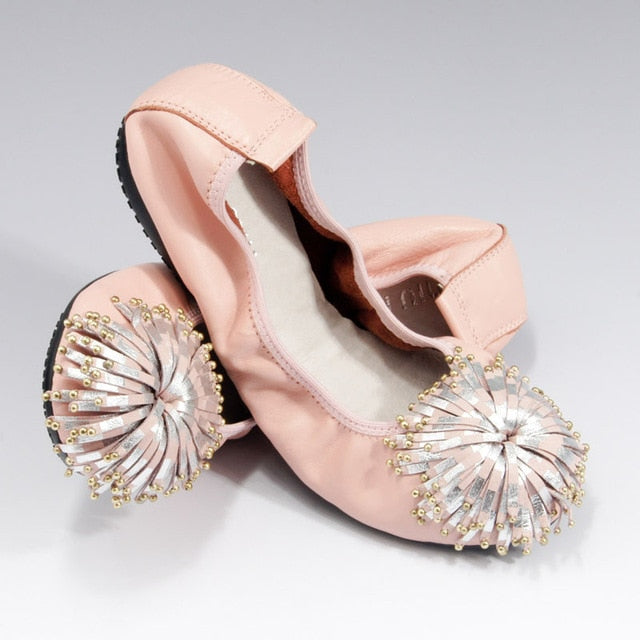Cow Genuine Leather Slip On Ballet Flat Shoes
