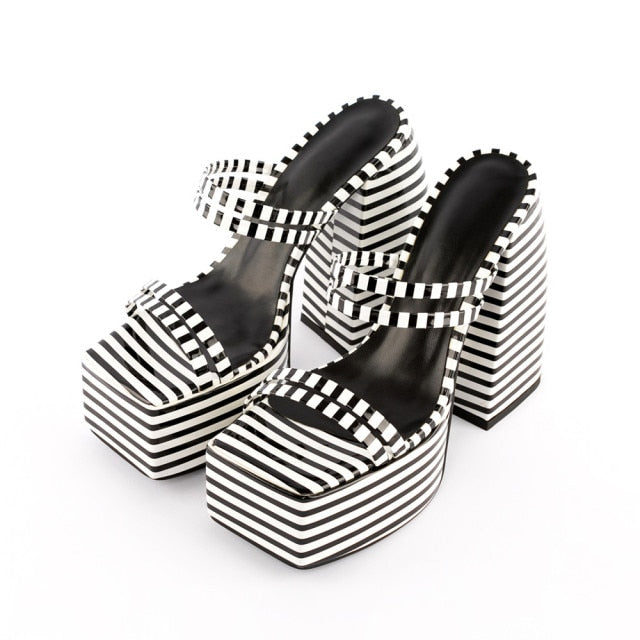 Get ready to be the center of attention with these sexy and super high heel sandals. The heel is a square shape and is a super high heel, which will give you that confident and powerful look you've been wanting.