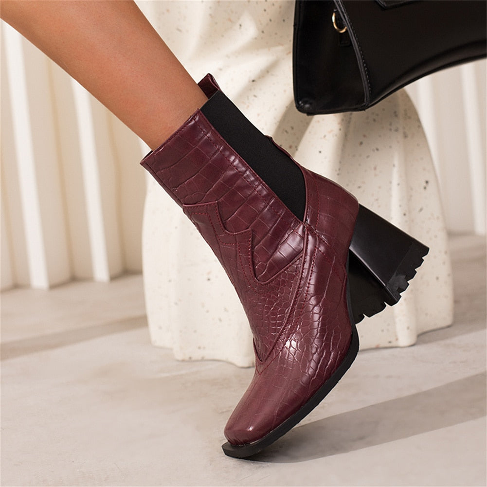 These boots are designed with a durable PU material, making them built to last. You can also choose from a variety of different animal skin patterns that are sure to add a touch of style to your outfit. Go for a pair of practical and stylish boots this season.