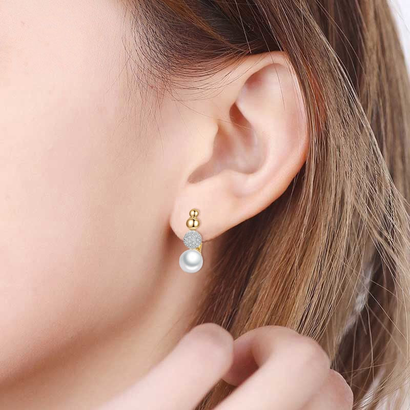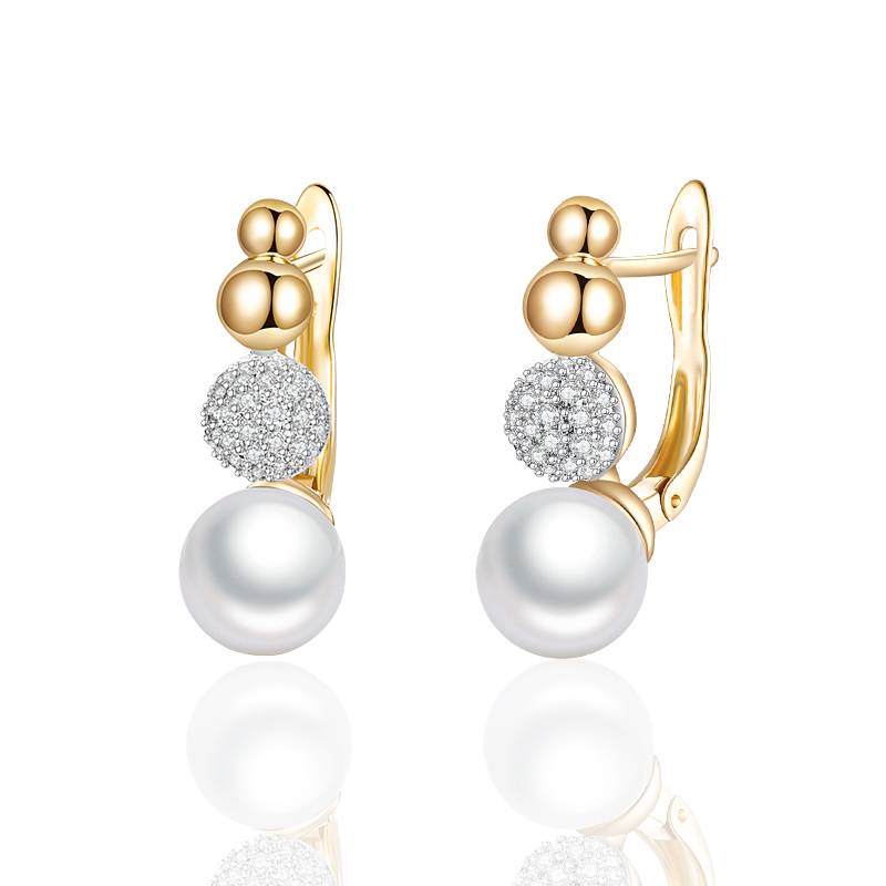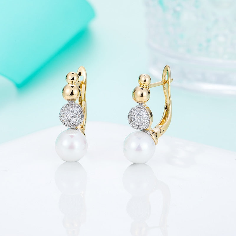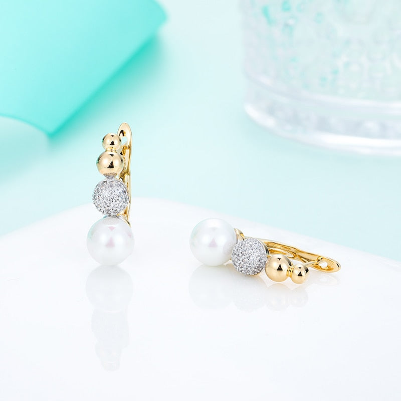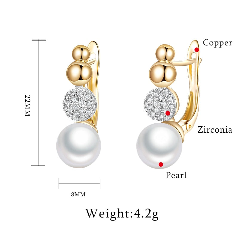 Cubic Zirconia Copper Ball Pearl Latched Push Back Drop Earrings