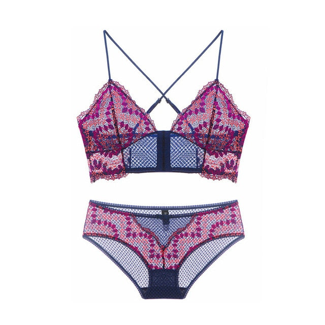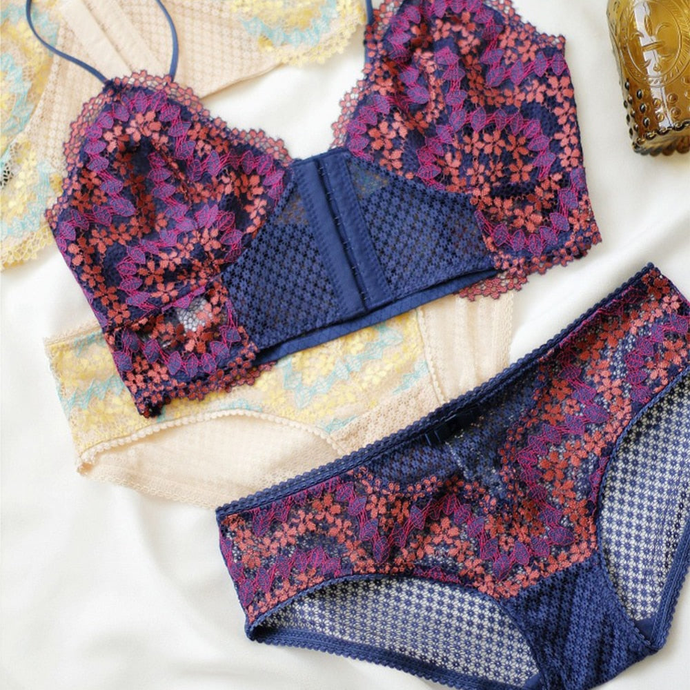 Front Closure Floral Pattern Seamless Bra and Briefs Sets with Cotton Material