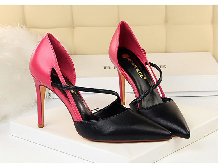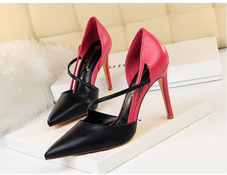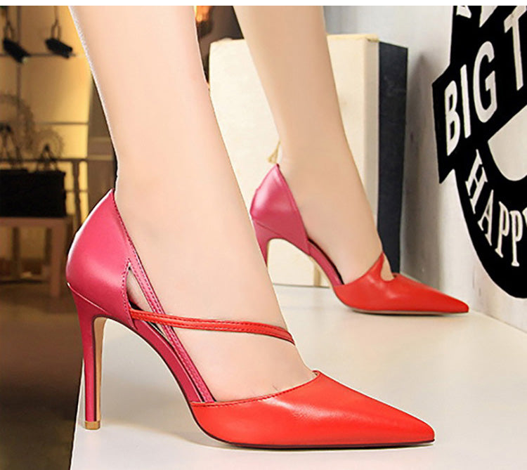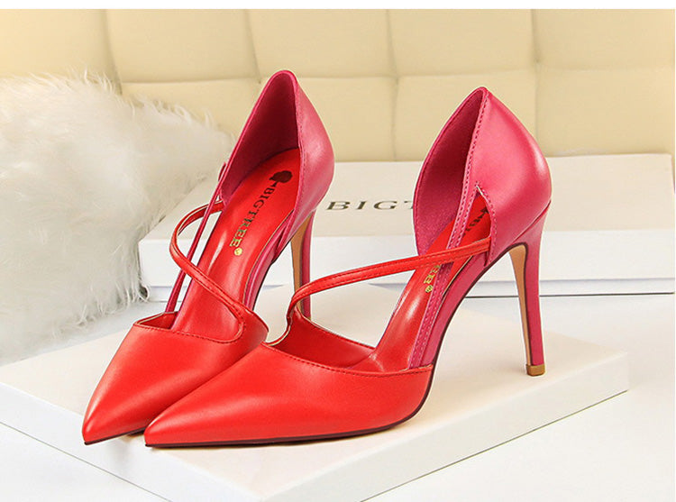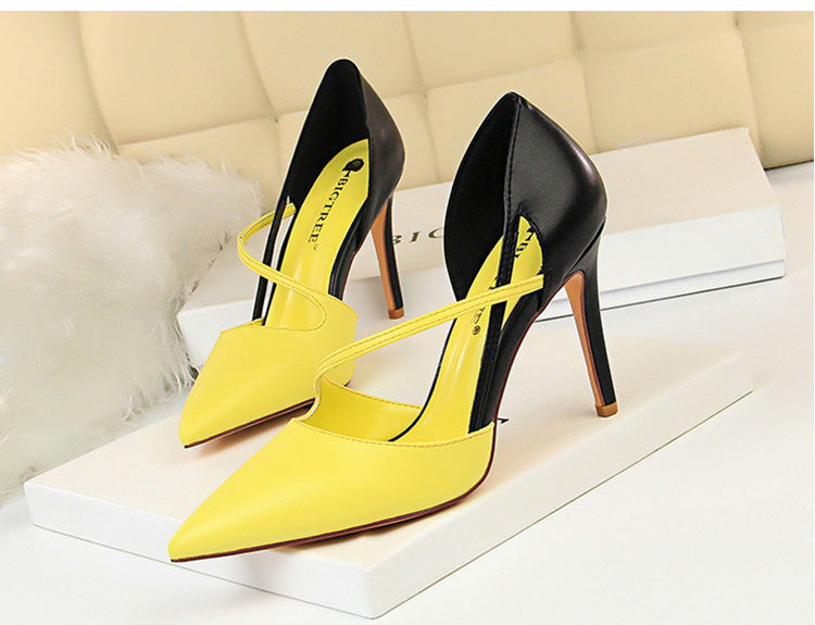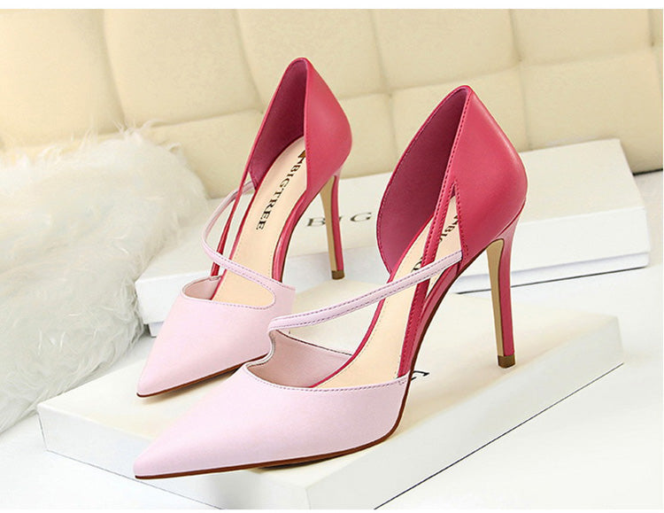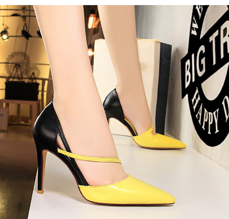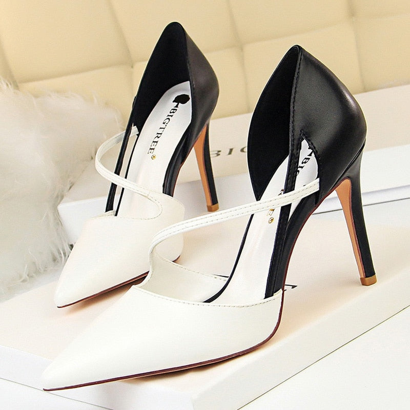 These pumps are the perfect way to update your wardrobe. These pumps are made of PU material and have a pointed toe. The shoes are solid mixed colors and the heels are thin. They are super high heels.