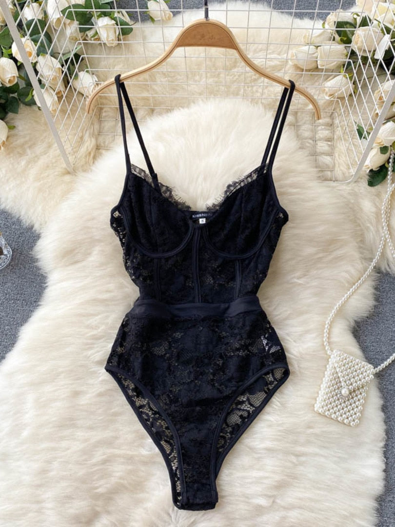This comfortable, sleek bodysuit features lace and spandex to hug your curves. It's a perfect way to stay comfortable and stylish at the same time. It has spaghetti straps that can be worn in the traditional way or crisscrossed in the back. The empire waistline will give you the perfect amount of coverage.
