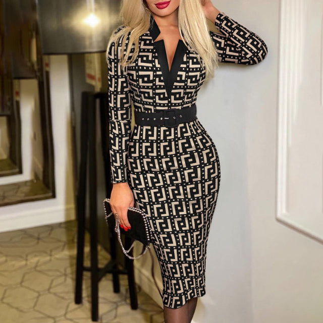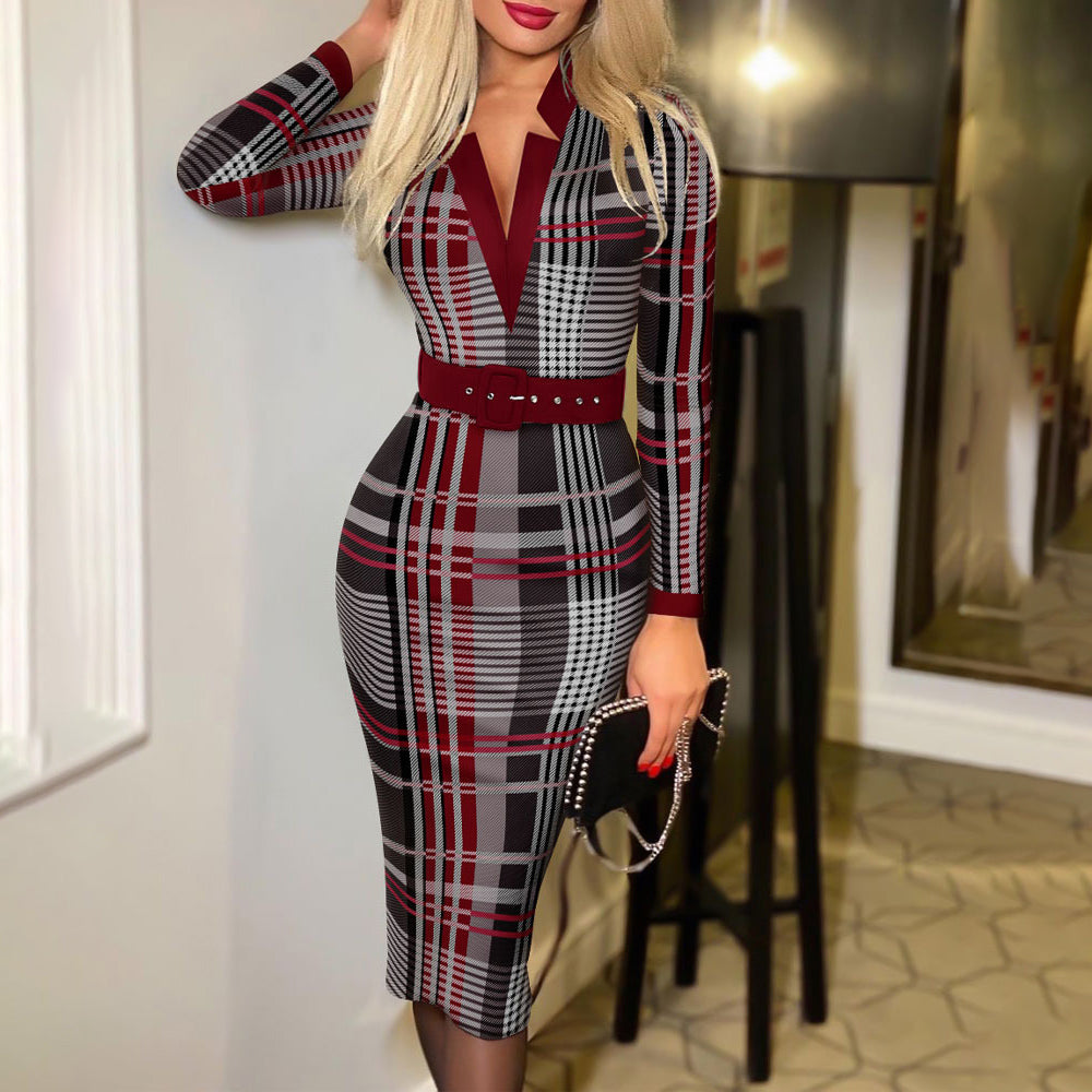 When you want to look your best, this is the dress for you. This is a professional-looking midi-length dress that is made of a soft, comfortable fabric. This is a classy dress for the office with a stylish V-neck that is sure to go with any outfit.