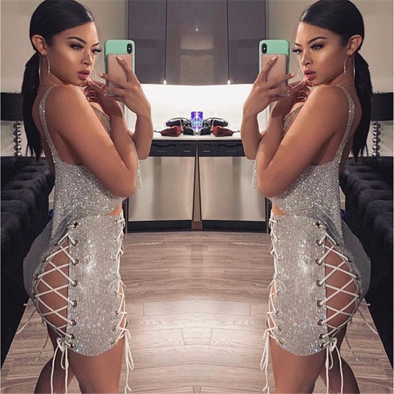 Lanon Polyester A-Line Lace Up Patchwork Light Your Night Mini Skirt
