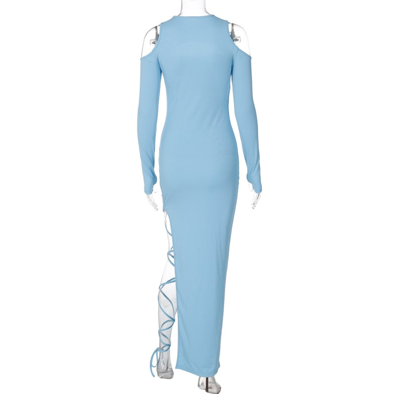 This maxi dress features a slim fit and full-length sleeves for ultimate comfort. The O-neck design and hollow-out decorations create an asymmetrical silhouette. Crafted with a blend of Polyester, Spandex, and Chemical Fiber, this dress is built to last and has slight stretch to ensure a perfect fit every time.