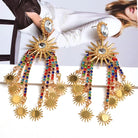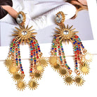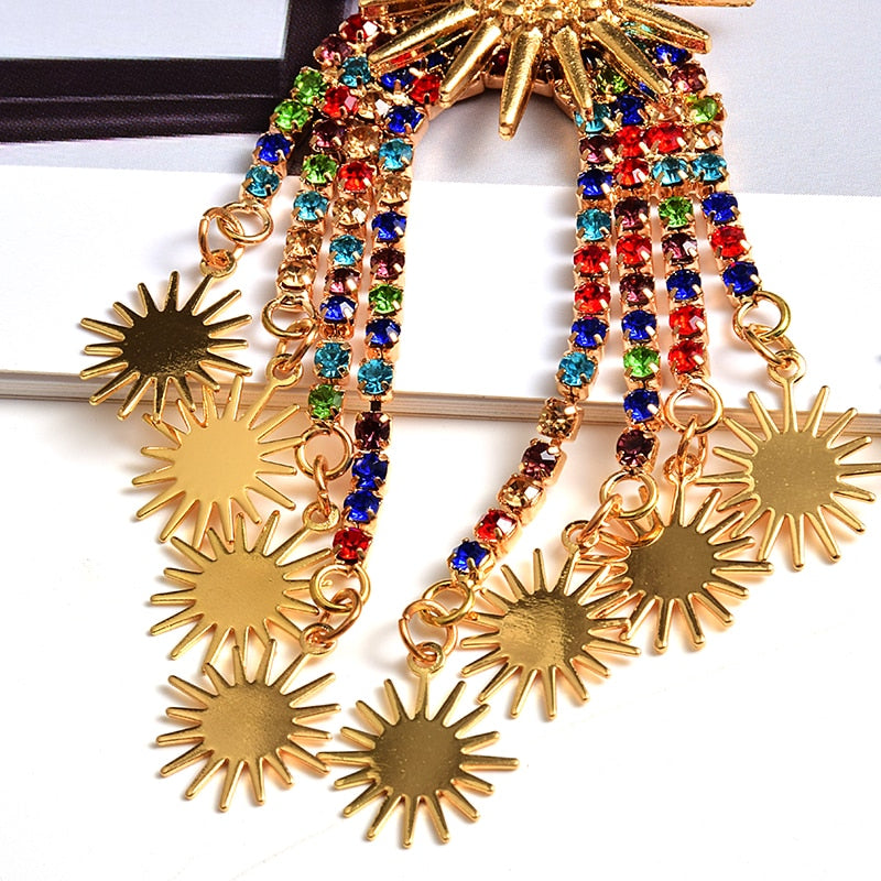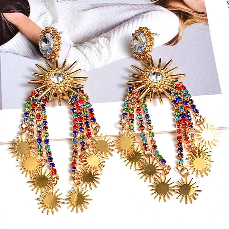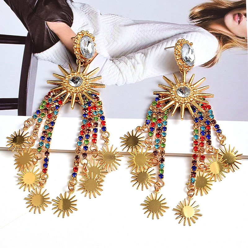 Star Shaped Alloy Metal Drop Dangle Earrings with Colorful Rhinestones