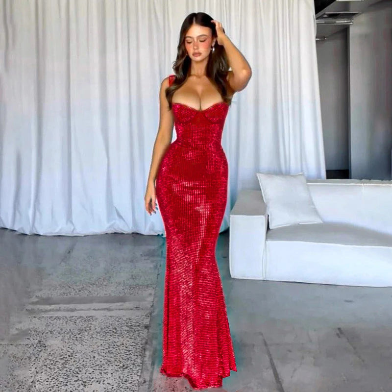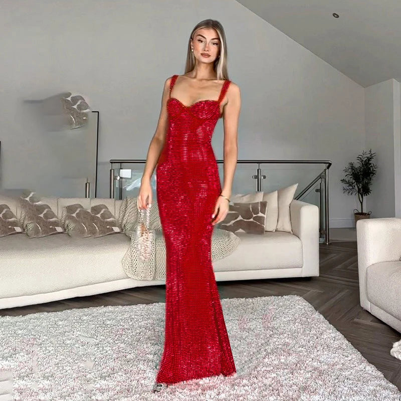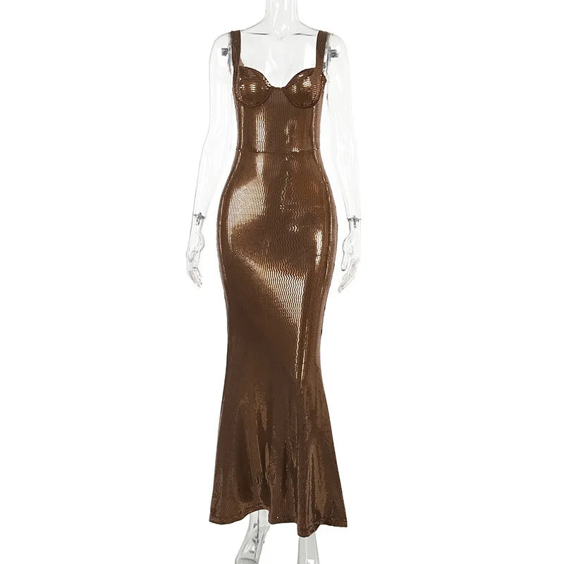 Elevate your style with the Living A Love Maxi Dress. This dress features a stunning sequin decoration and a flattering trumpet/mermaid silhouette. The spaghetti strap adds a touch of elegance while the ankle-length design keeps it current. Made with high-quality polyester, this dress is both comfortable and stylish. Perfect for a sexy and glamorous look.