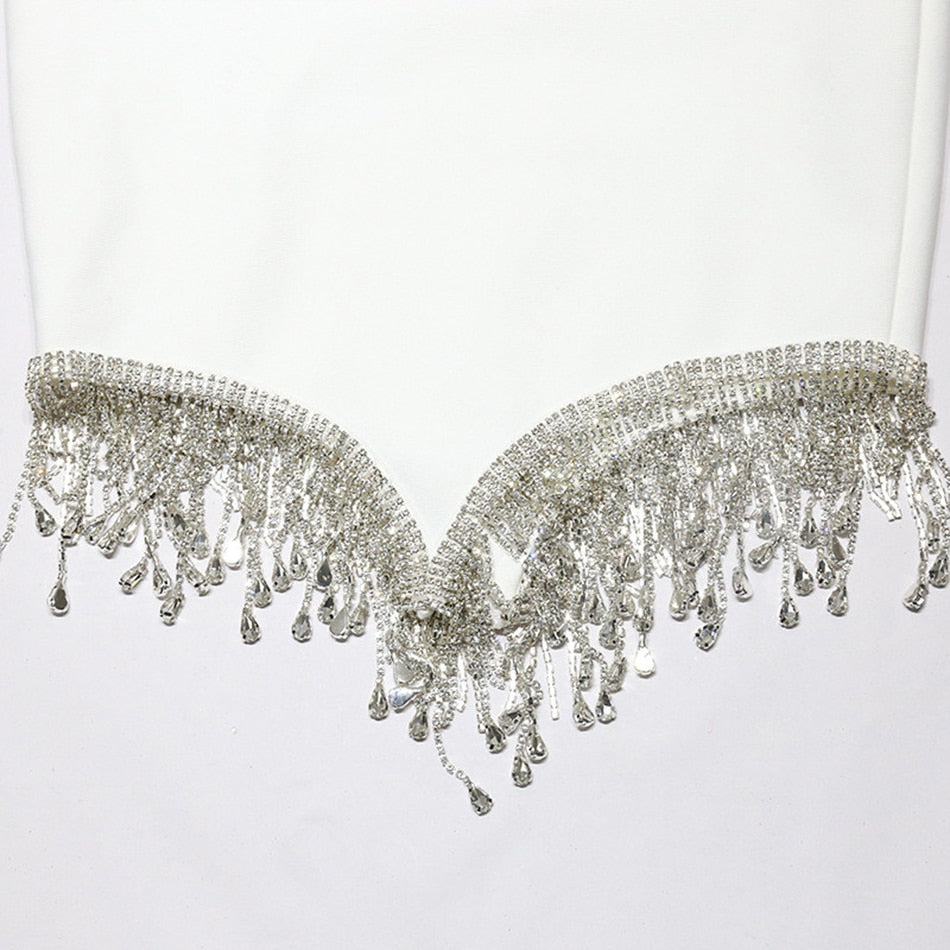 This mini dress is a highly desirable style that is perfect for any occasion. Made of soft, lightweight fabric, this style is perfect for comfort and easy to wear year-round. This feminine color is flattering and vibrant so she can wear it with ease. The sleeveless design is perfect for modesty and is ideal for a variety of occasions. A stylish rhinestone-chain detail adds just the right touch of glamour. This is a must-have fashion staple that is sure to make a big impact.