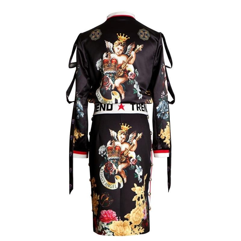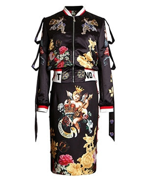Floral Patterned Bomber Jacket and Midi Skirt Sets