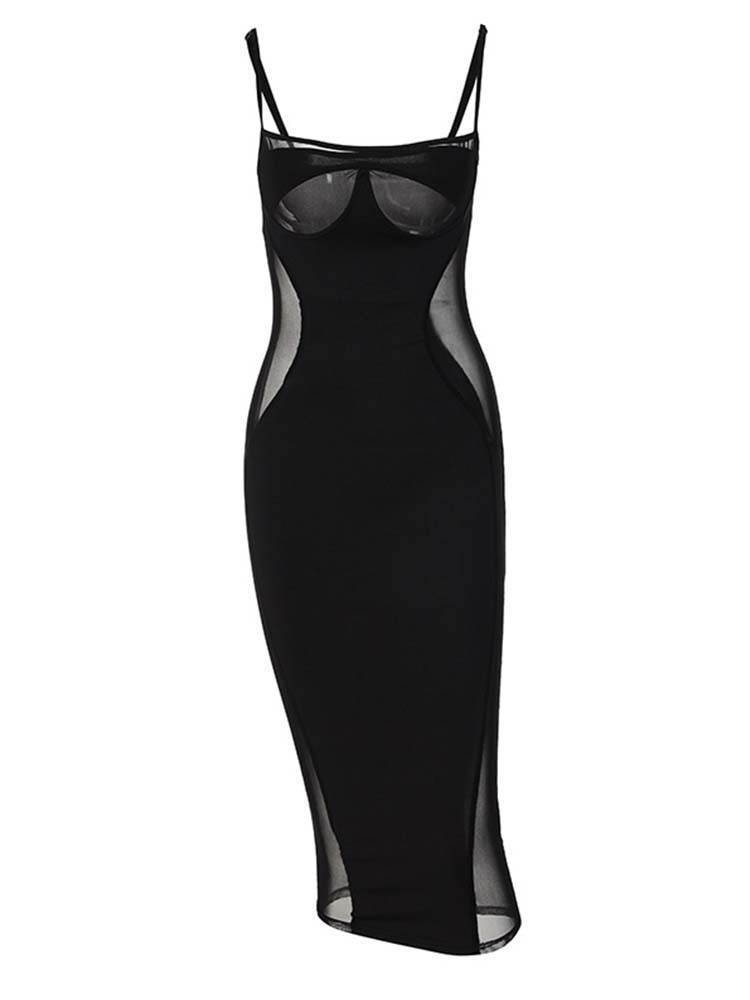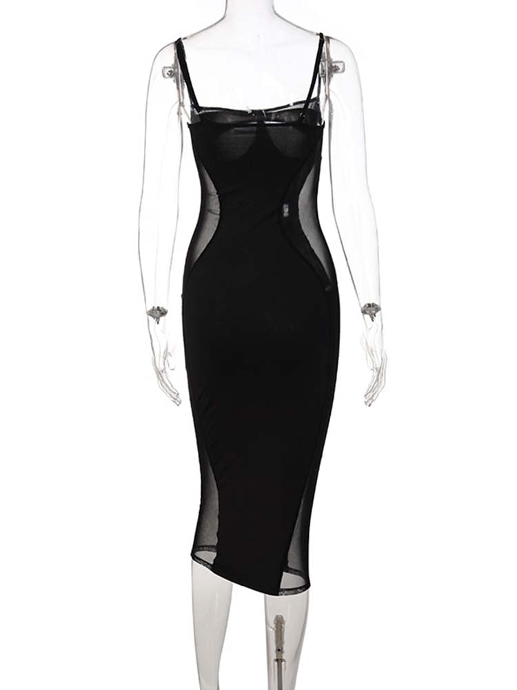 This midi dress is essential for a modern wardrobe. It’s crafted from solid polyester and comes in classic black. The spaghetti straps add a unique, stylish touch to the design. Perfect for formal occasions, this dress is sure to make a statement.