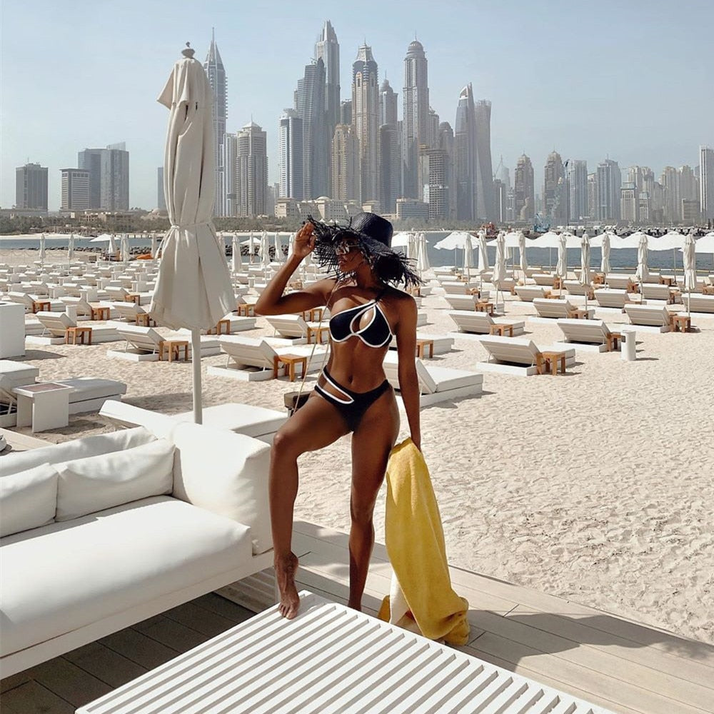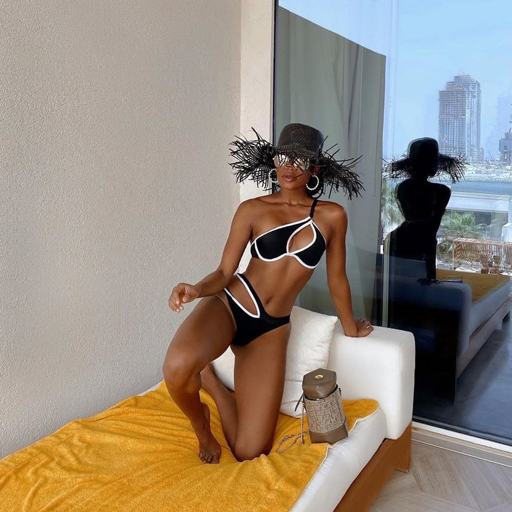 This two-piece bikini set is perfect for any occasion, whether you're lounging by the pool or taking a day trip to the beach. The one-shoulder strap design is comfortable and flattering. The two-piece bikini features a solid color and a floral pattern variant.