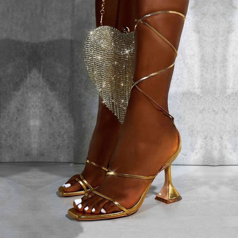 PU Leather Rubber Solid Patterned Cross-Tied Laced-Up Gladiator Heels