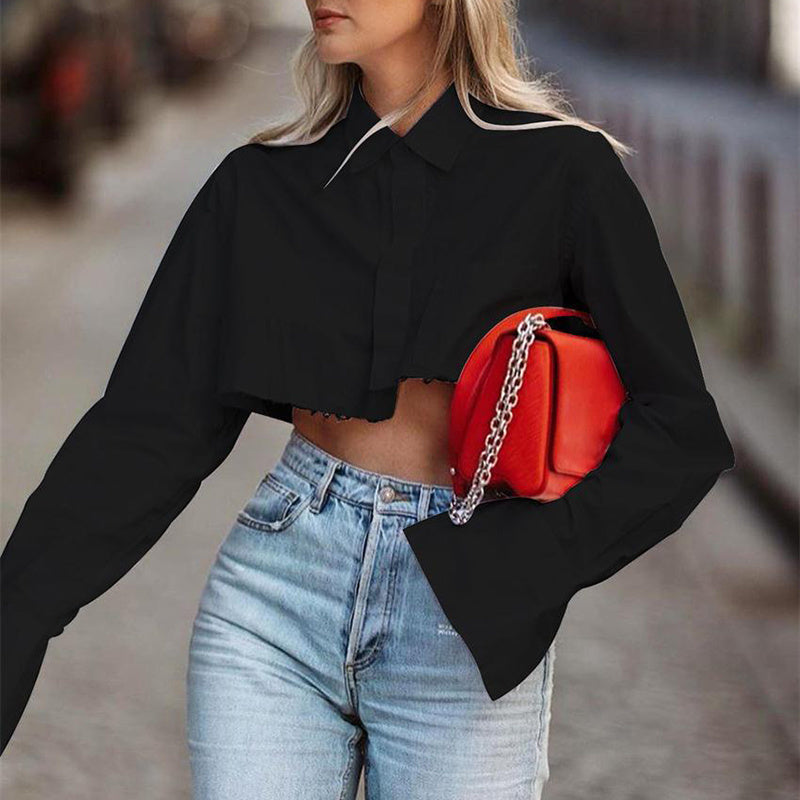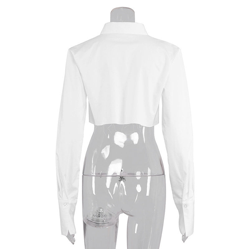 This versatile women's crop top is a must-have for any wardrobe. Made from cotton, this long sleeve top features a solid color, turn-down collar, and single-breasted design. Wear it with your favorite jeans and sandals for a casual day at the beach or with a blazer and slacks for a more formal look.