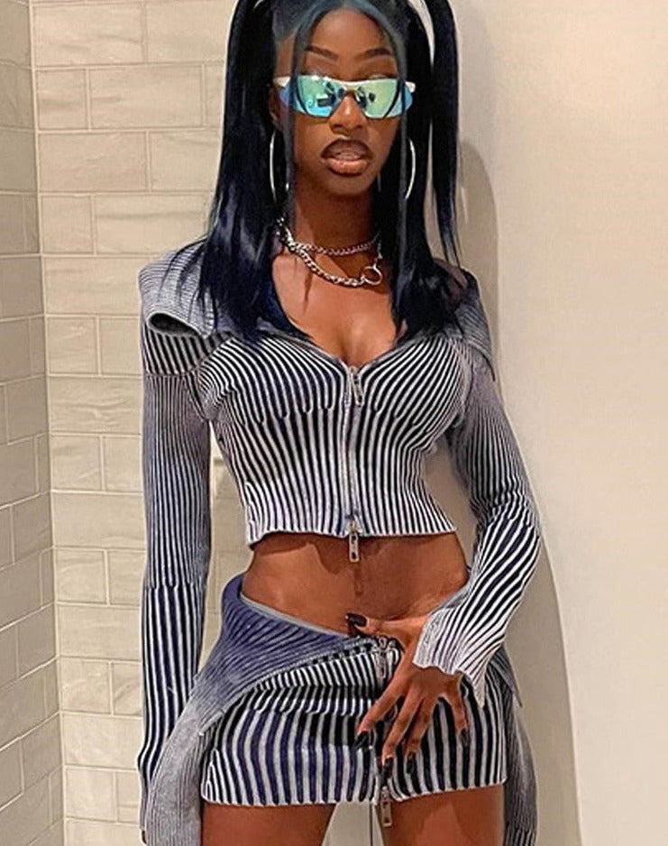 Dress up in this cool and stylish women's jacket that is made from polyester. A trendy striped design that gives off a contemporary look, this stylish jacket combines well with a variety of other items. A crop length makes it easy to layer on layers whilst the zipper front closure makes it easy to get in and out of. Designed to give you that effortless elegance that is perfect for any day.
