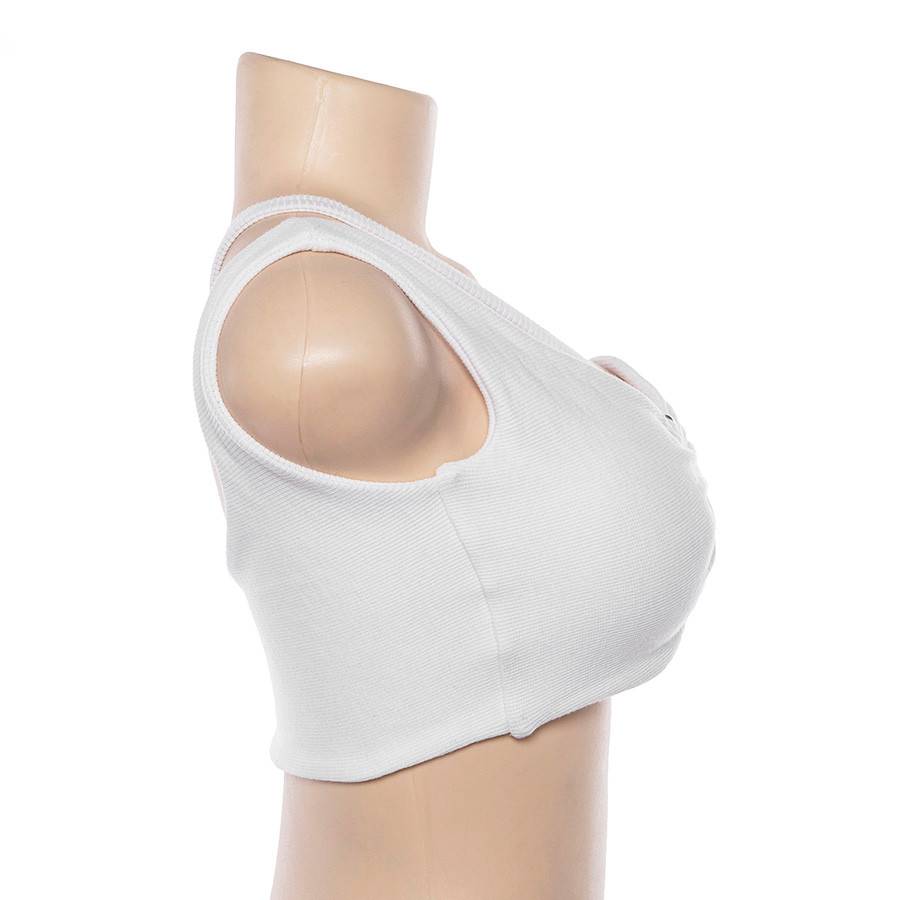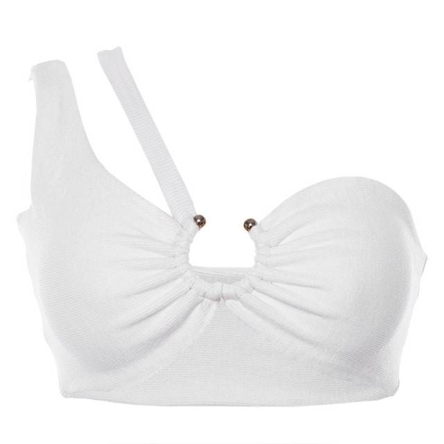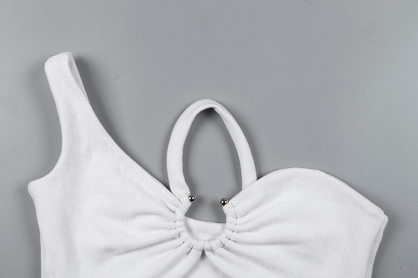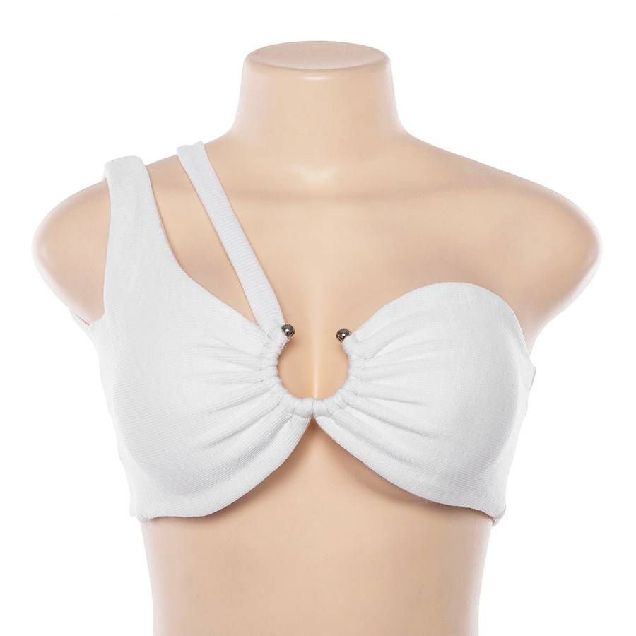 Jersey Polyester Spandex Camisole Top with Metal Ring Decoration and Hollow Out One Shoulder Strap