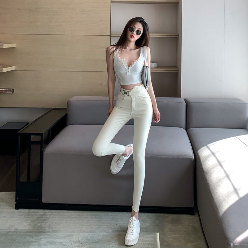 Pencil pants are a staple in every girl's wardrobe. The perfect way to stay stylish, comfortable and cool in the summer heat. These stylish, high-waist pencil pants also come in a wide range of stylish styles that are comfortable and feminine. The practical cotton fabric is great for everyday use and will keep her looking and feeling her best.