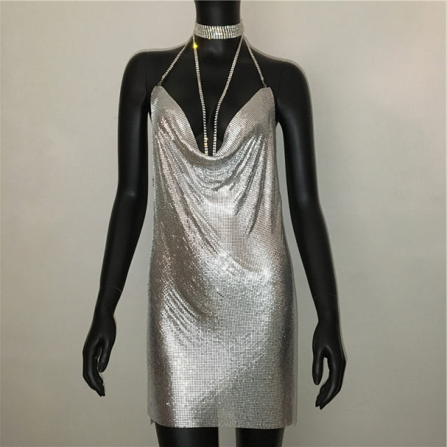 This sexy mini dress is an essential staple in any woman's wardrobe. The shimmering fabric is super soft and feels amazing against the skin. The spaghetti straps give off a sexy retro vibe while the mini length is versatile enough to be worn. Pair this with a pair of killer heels for a killer look.