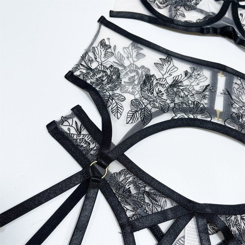 You'll love the look and feel of these feminine bras, briefs, and garter sets. The materials will keep you cool and comfortable throughout the day. The bra has a cute floral design that is sure to become a fashion staple.