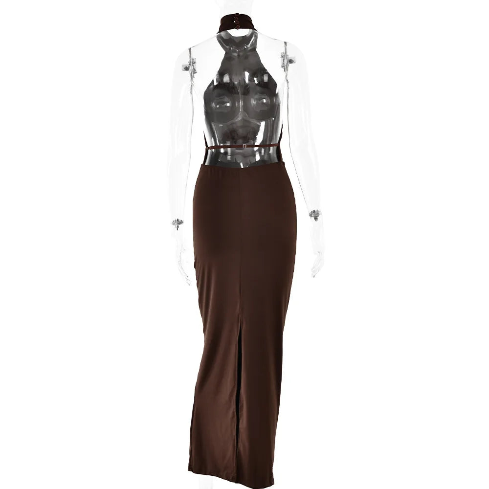 Elevate your style without maxi dress! The solid, polyester, and spandex dress features a sleeveless design, providing comfort and breathability. Make a statement in any setting with this maxi dress that exudes confidence and elegance.