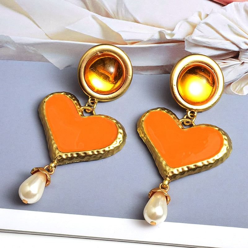 Heart-Shaped Zinc Alloy Drop Dangle Earrings