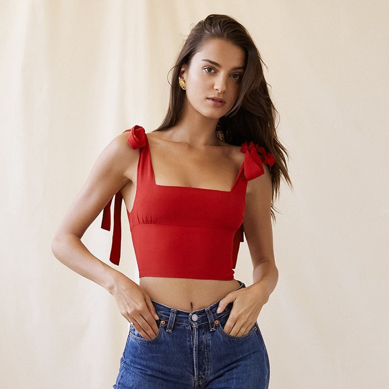 Solid Sleeveless Cotton Polyester Crop Top with Lace-Up Strap
