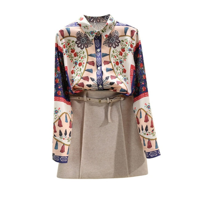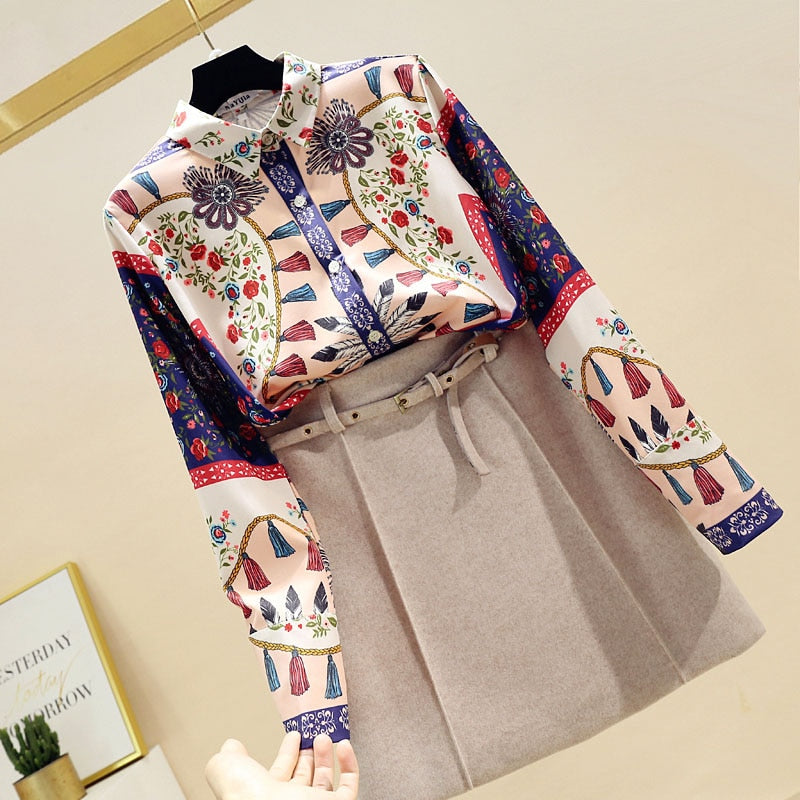 Vintage Floral Pattern Shirt with Turn Down Collar and Button Closure
