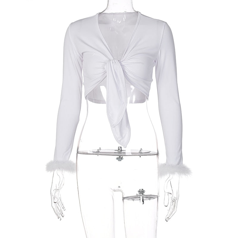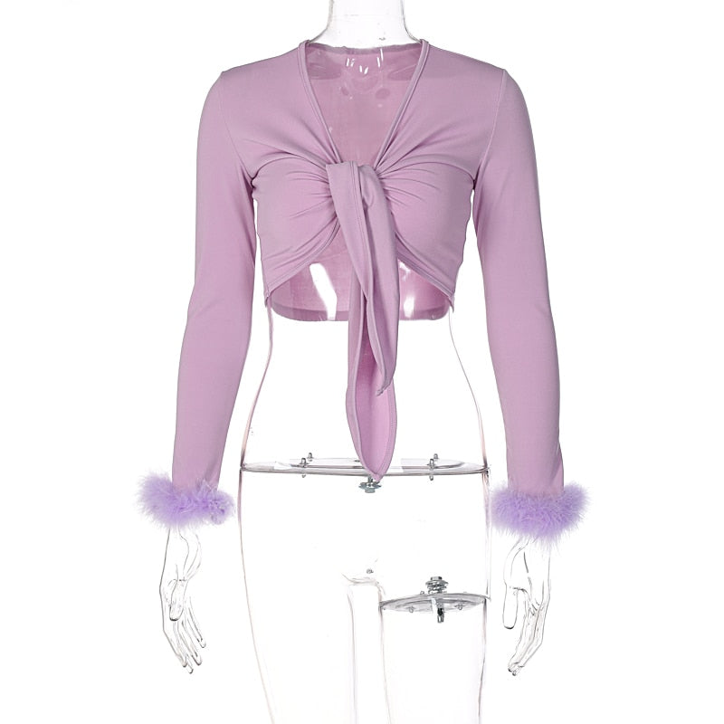 Introducing the Our First Love Crop Top, designed with a solid pattern and long sleeves. With feather decoration details, this top is both stylish and versatile. Perfect for any occasion, you can trust this high-quality crop top to make a lasting impression.