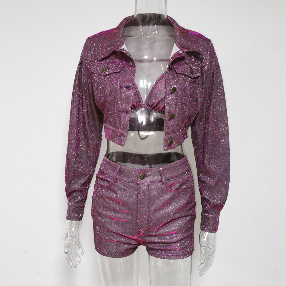 Polyester Solid Pattern V-Neck Single Breasted Full Sleeve Short Sets
