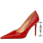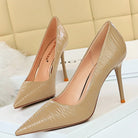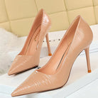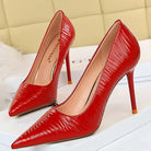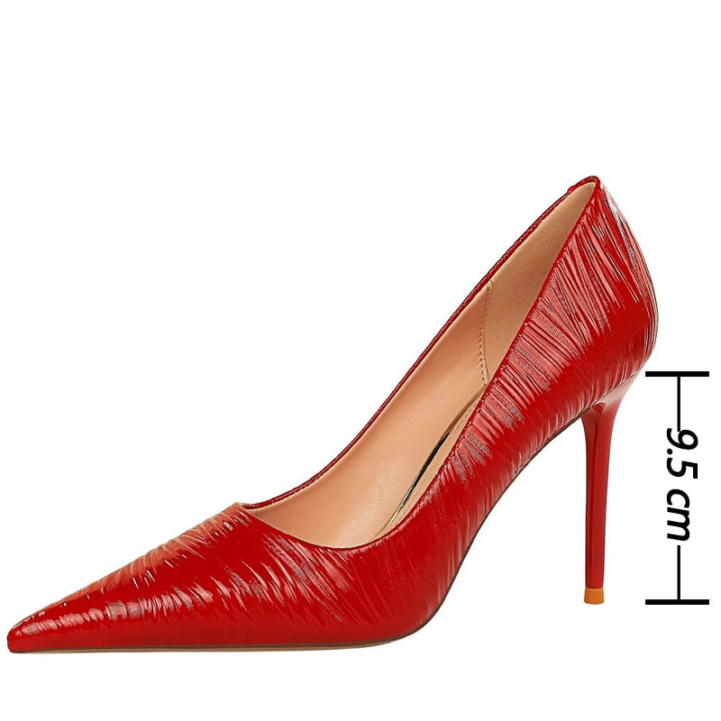 Pointed Toe Solid Pumps with Subtle Waves Patterns and Patent Leather Material