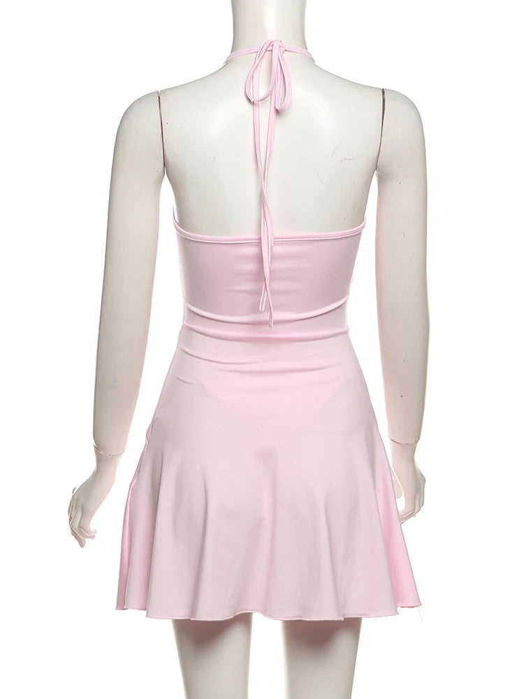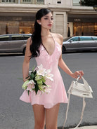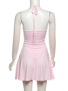 Command the room in the Roseblood Rise Mini Dress, crafted from a sleek blend of polyester and spandex for a figure-hugging fit. Its daring halter neckline highlights your shoulders, making this bold piece perfect for those who want to rise above the ordinary with fearless style.