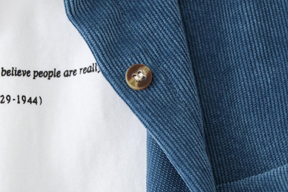 Solid Corduroy Shirt with Turn Down Collar and Single-Breasted Closure