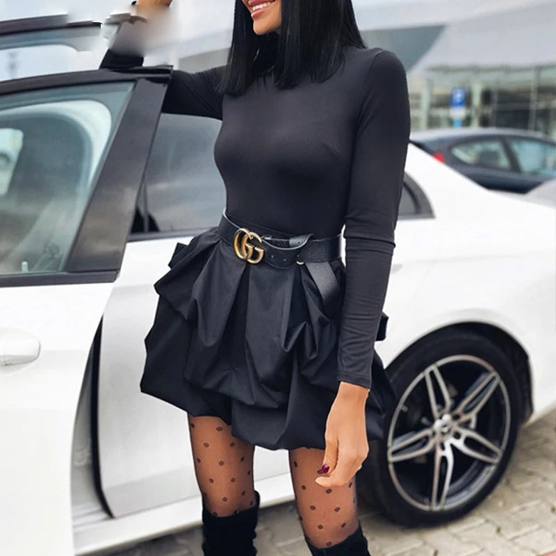 Sexy Black Mini Bud Long Sleeve Women Dress