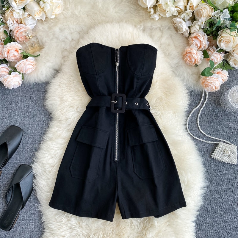 Solid Sleeveless Polyester Rompers with Pockets and Sashes Decoration