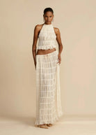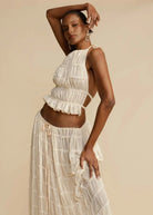 Sheer Lace Up Ruched Skirt Set